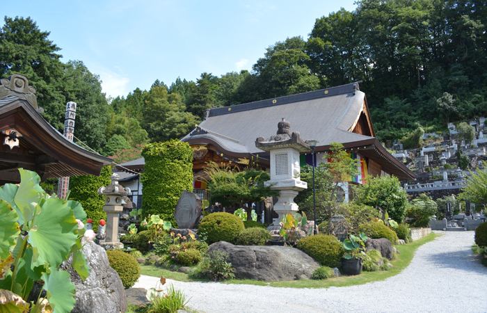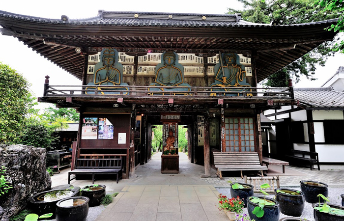 1906年に本堂が焼失、現在の本堂は1974年に再建されたものです。山門は1741年の建造で山門内には冥界で亡くなった者を裁く閻魔大王などの像が並んでいます。