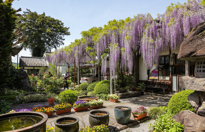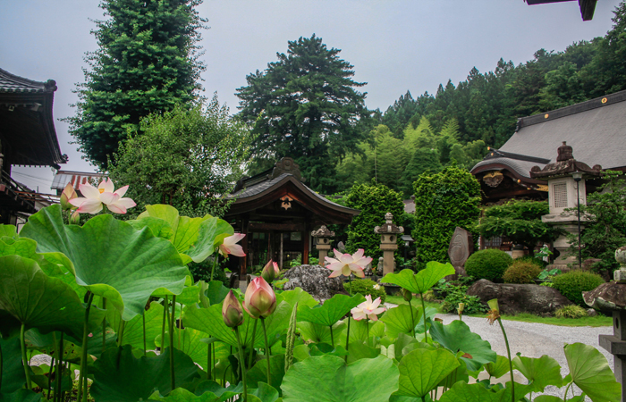 桃・ツツジ・フジ・アジサイなど四季折々の花が咲く「花の寺」として知られます。