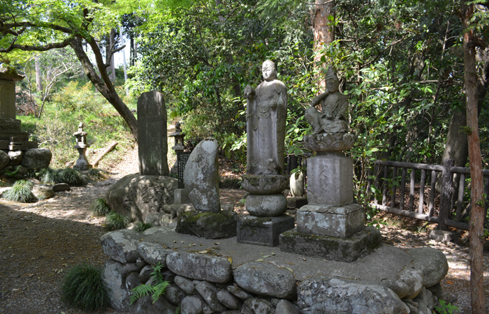 境内には真言曼荼羅供養塔、弁財天石塔、芭蕉句碑、宝篋印塔などが並ぶ。