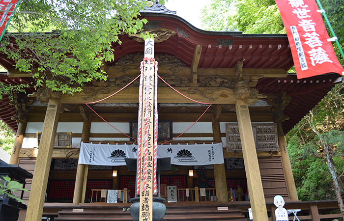 ・観音堂:1707年建立。懸崖造りの観音堂。弘法大師が一晩で大般若経(全600巻の経典)を書き納めたという言い伝えから般若堂ともいわれる。